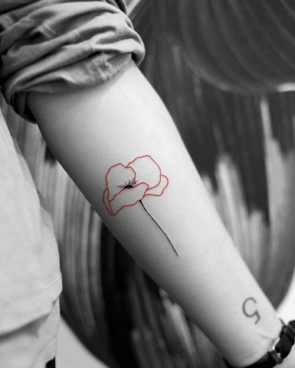 以一笔红色为装饰的极简线条纹身图片9张