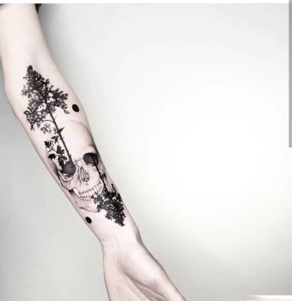 手臂上的一组高级黑灰纹身图片