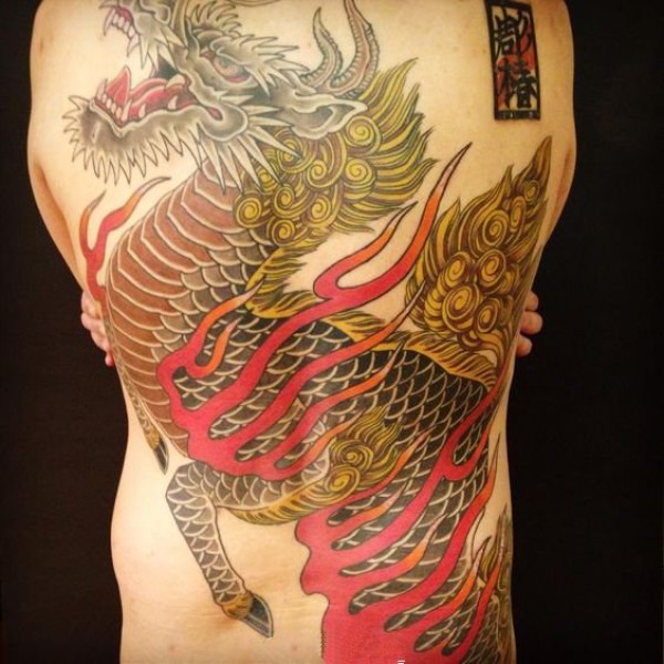 传统风格火麒麟纹身_麒麟纹身图案大全_纹身图吧