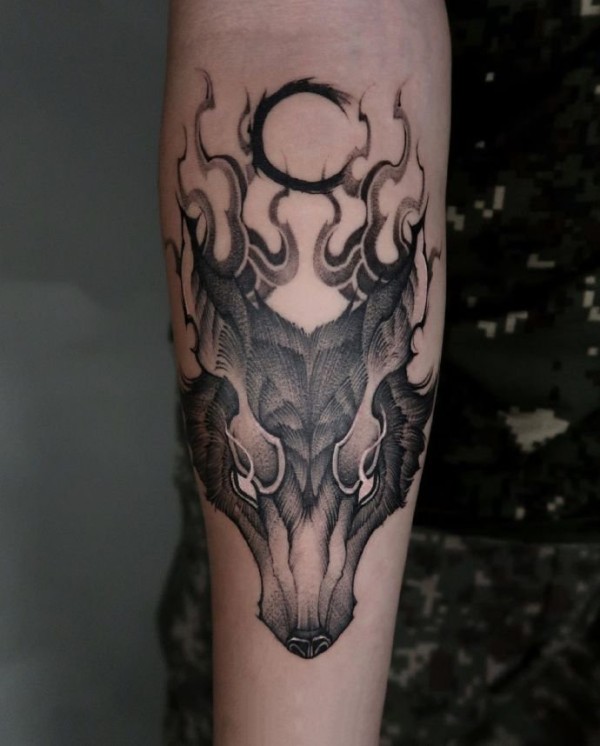 花腿纹身--一组大黑腿纹身图案作品欣赏