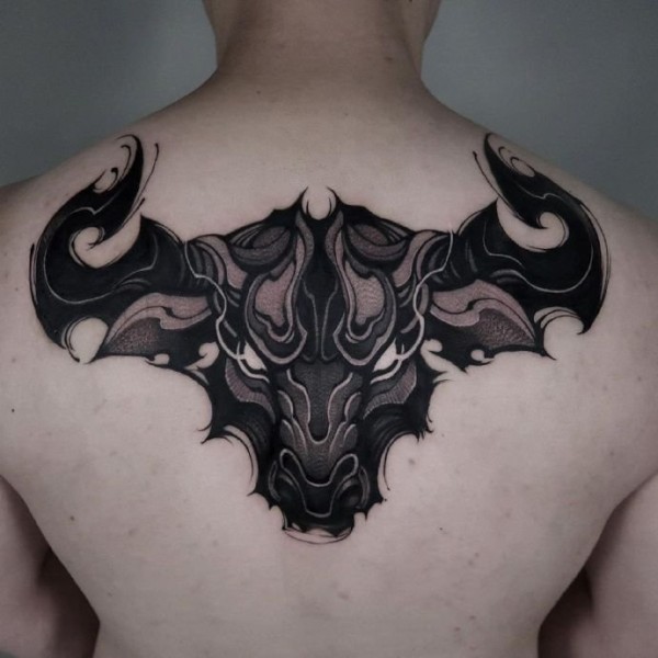 新传统风格的9张男性黑灰大满背纹身图案图片