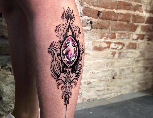 漂亮宝石来点缀的装饰风格黑色点刺纹身图案
