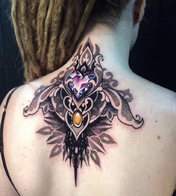 漂亮宝石来点缀的装饰风格黑色点刺纹身图案