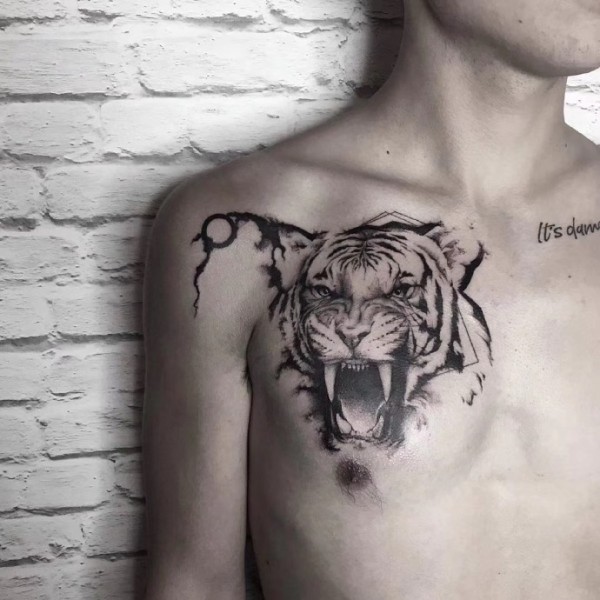 老虎图腾纹身 多款黑灰纹身点刺技巧老虎纹身图案
