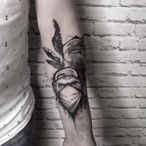 欧美花臂纹身_22张霸气黑灰欧美大黑花臂纹身图案作品图片