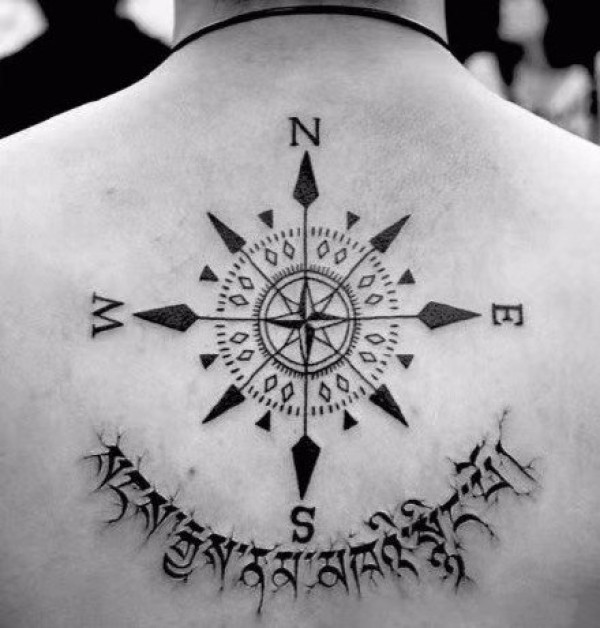 纹身指南针 水彩与线条结合的指南针纹身图案