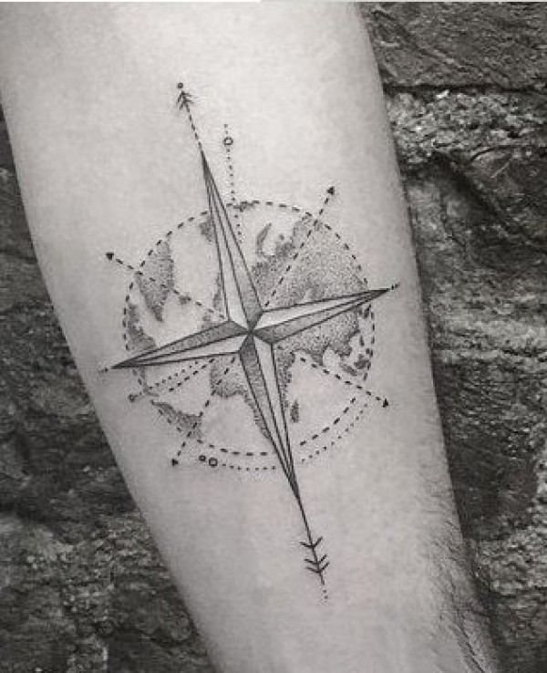 小臂和小腿上的9张漂亮指南针纹身图案