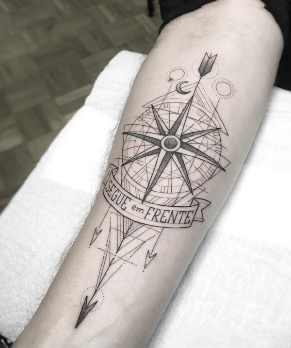 小臂和小腿上的9张漂亮指南针纹身图案