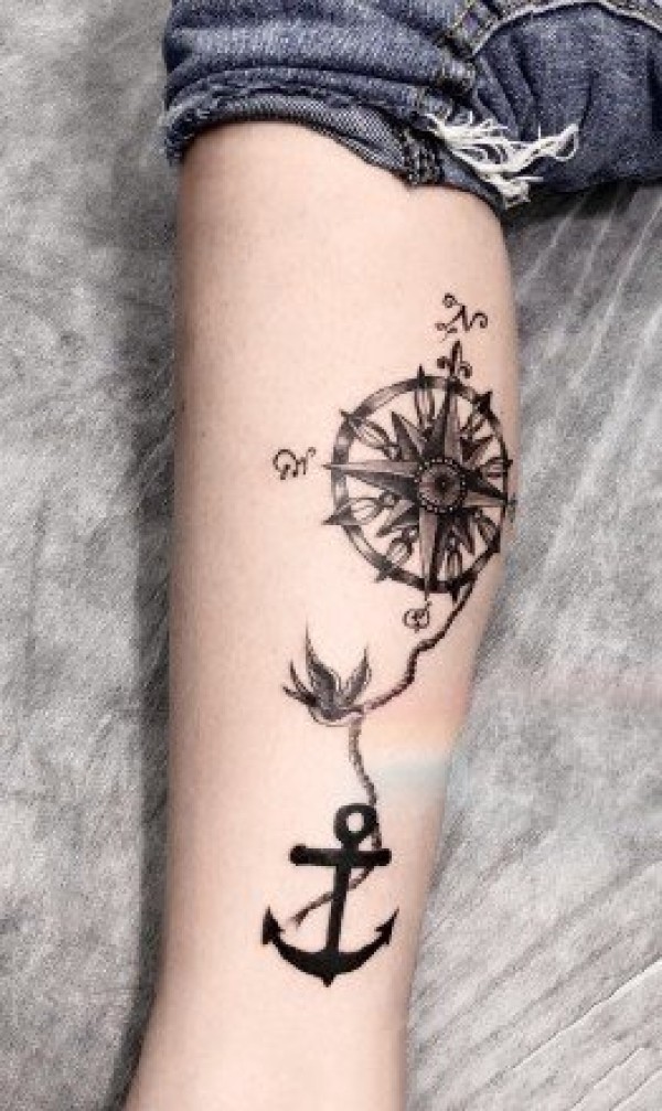 有方向,何惧于风浪——指南针纹身图片9张