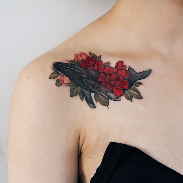 逼真的超现实主义花纹身图案来自纹身师莫拉莱斯