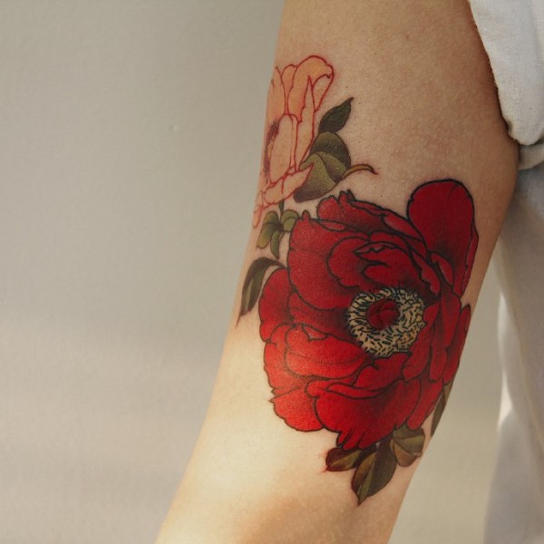 逼真的超现实主义花纹身图案来自纹身师莫拉莱斯