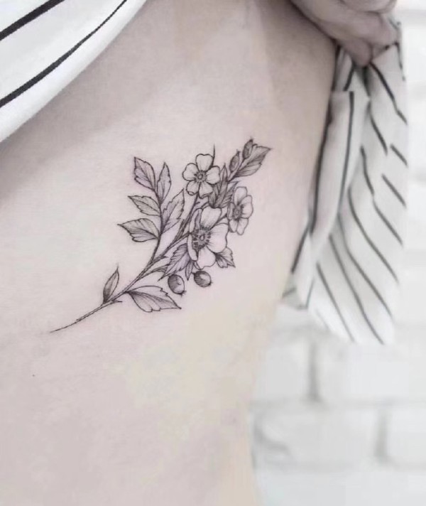 女生素花纹身 适合女孩子的小清新花朵线条纹身图案