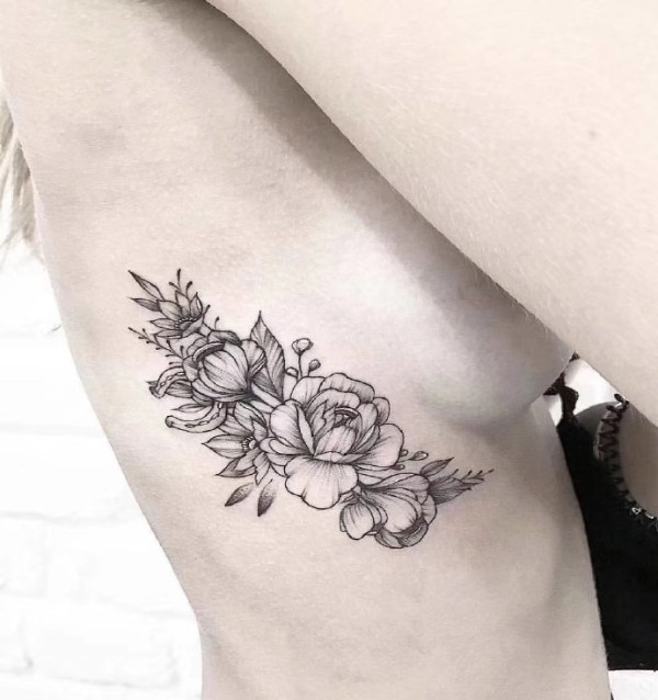 大臂素花纹身 9款女士的大臂黑灰花朵植物纹身图案