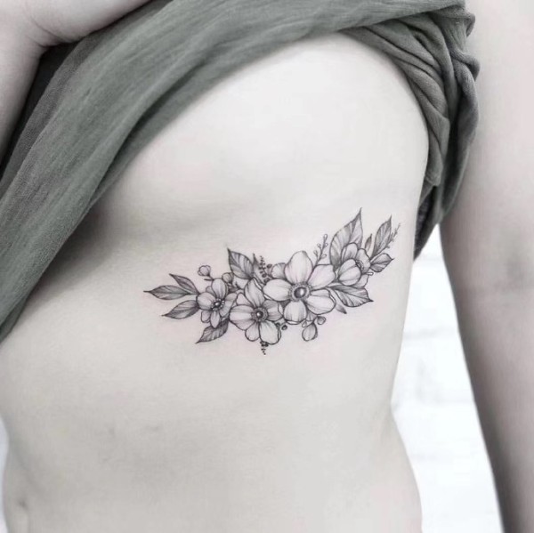女生素花纹身 适合女孩子的小清新花朵线条纹身图案