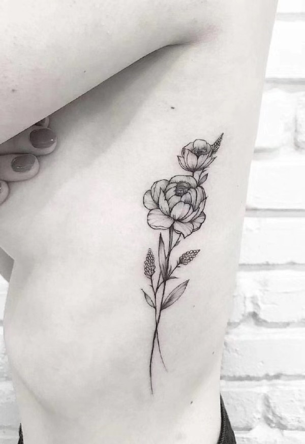 女生素花纹身 适合女孩子的小清新花朵线条纹身图案