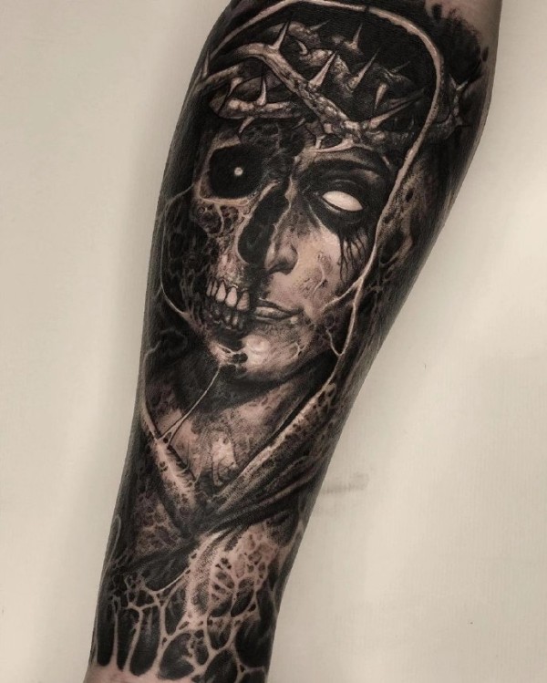 多款恐怖的黑灰色现实风格纹身图案来自乔恩