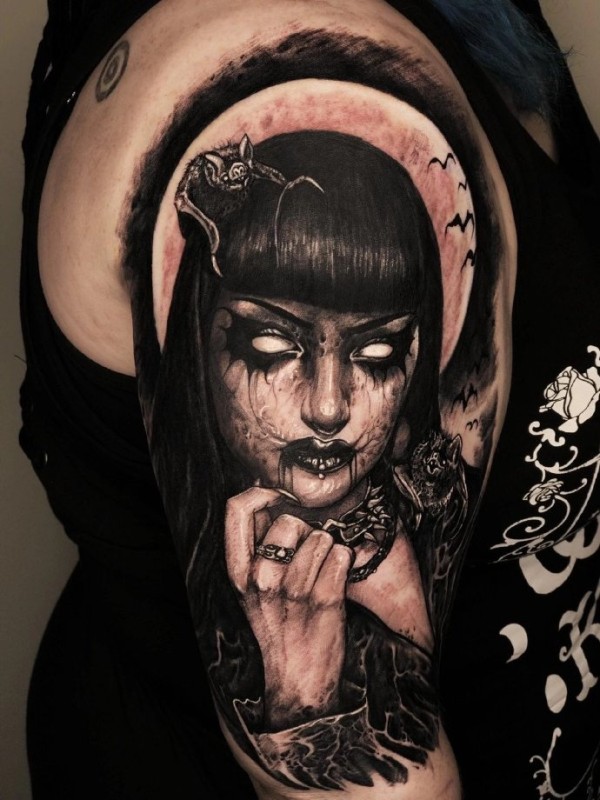 多款恐怖的黑灰色现实风格纹身图案来自乔恩