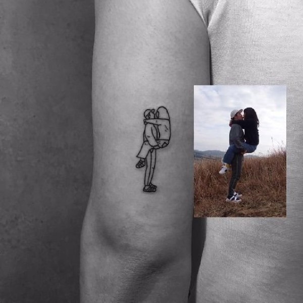 纹身照片 女生大臂上彩色的情侣结婚照纹身图片