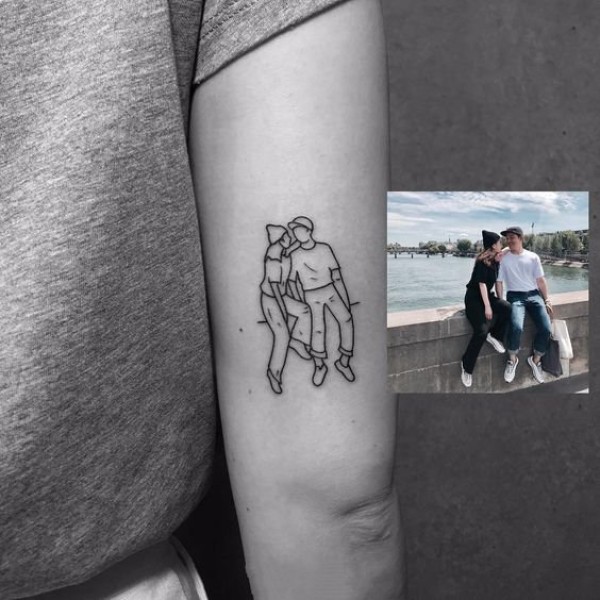 纹身照片 女生大臂上彩色的情侣结婚照纹身图片