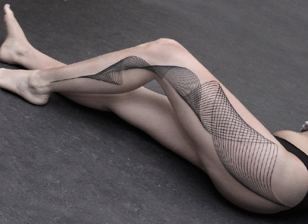 女生后腰纹身黑白灰风格抽象线条纹身图案