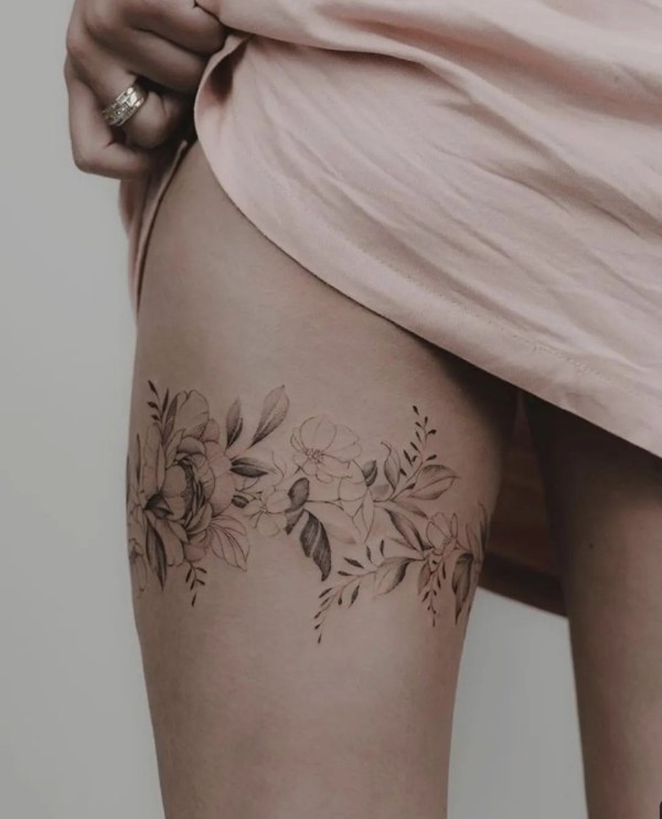 腿部纹身女 9组女性大腿侧部性感纹身作品图