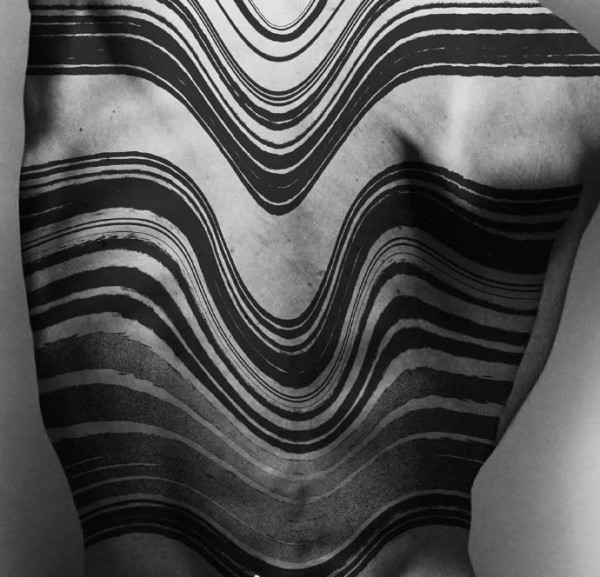 女生后腰纹身黑白灰风格抽象线条纹身图案