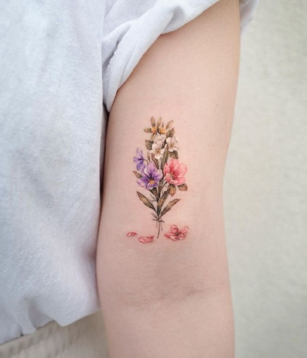 纹在手臂胳膊上的黑灰素花花卉纹身图案欣赏