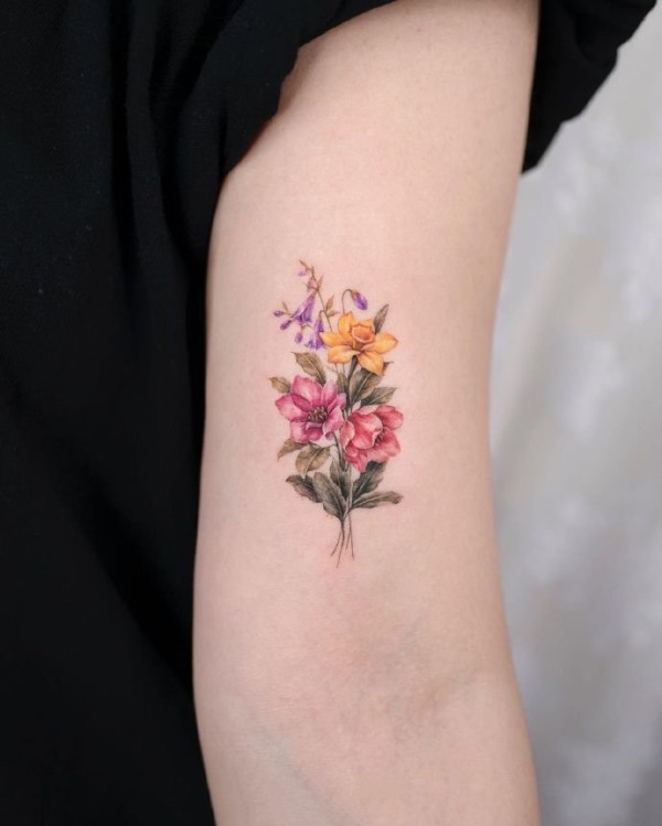 手臂上的一组小清新花卉纹身图片
