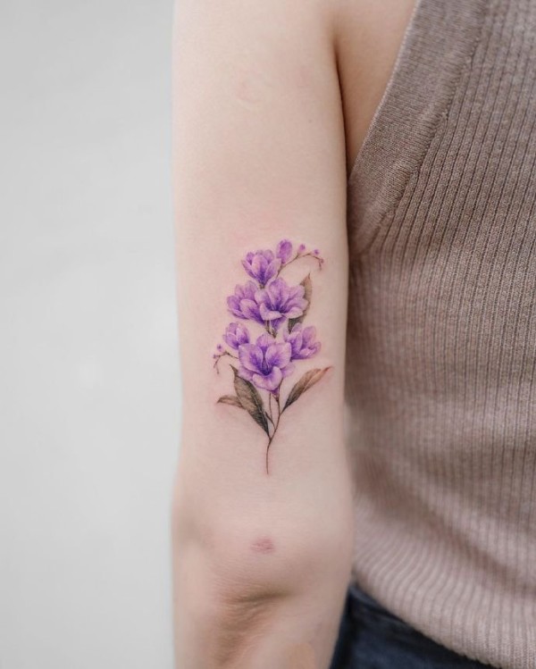 纹在手臂胳膊上的黑灰素花花卉纹身图案欣赏