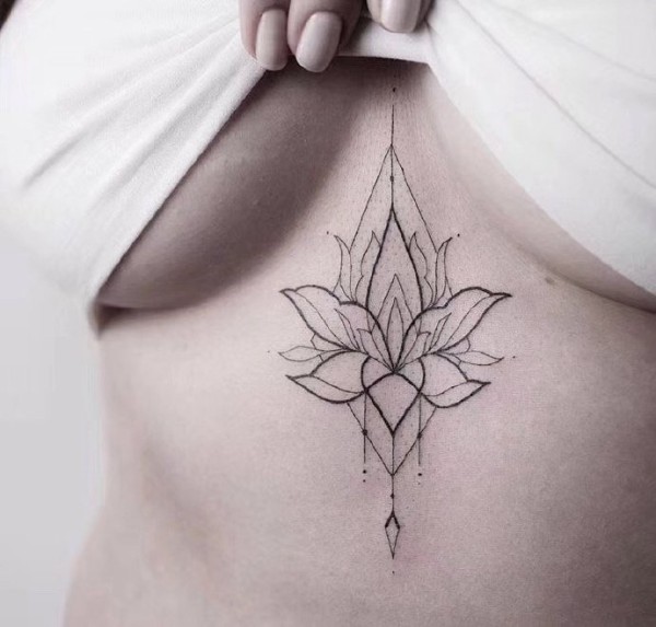 性感胸部纹身 9款女生别致优雅的胸下梵花纹身图案