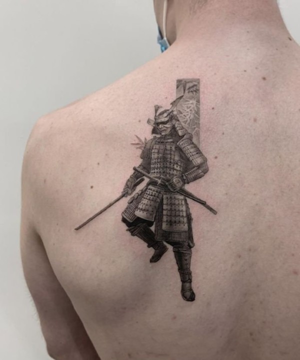 新传统风格的9张男性黑灰大满背纹身图案图片