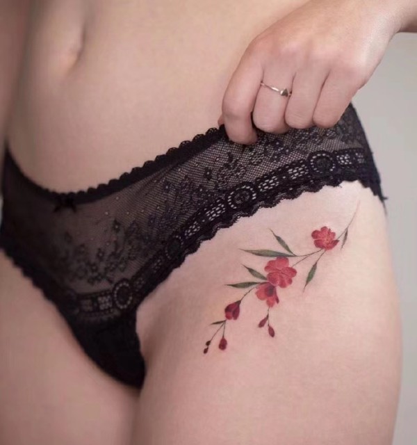 清新花朵腿部纹身图案图片_植物纹身图案大全_纹身图吧