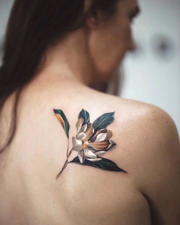 后肩唯美花藤英文图案图片_植物纹身图案大全_纹身图吧