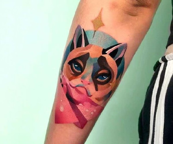几张炫彩newschool彩色手臂纹身图案作品