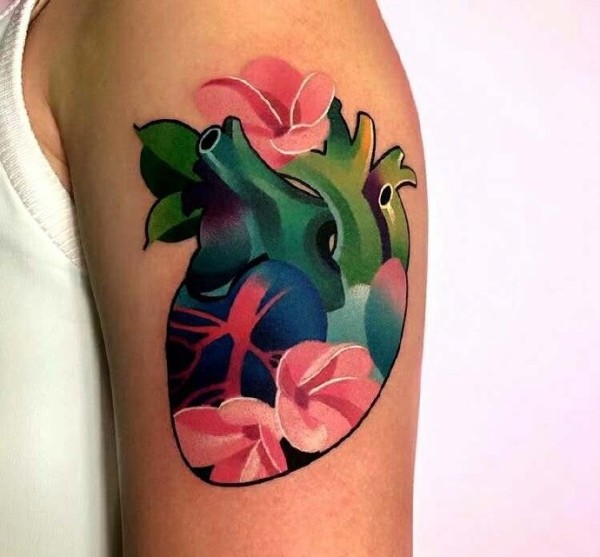 几张炫彩newschool彩色手臂纹身图案作品