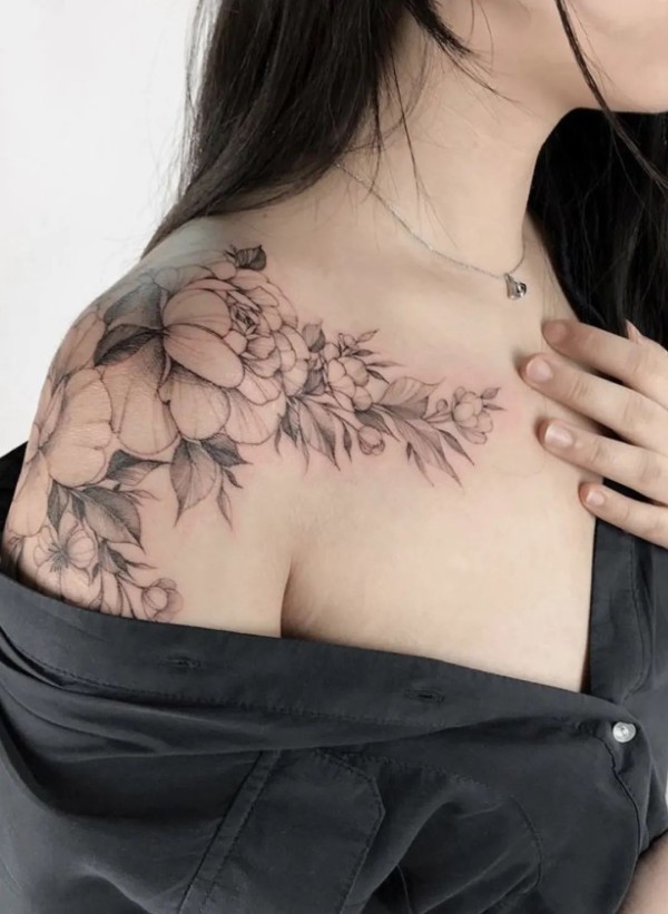女性肩膀上多款漂亮的花朵纹身图案