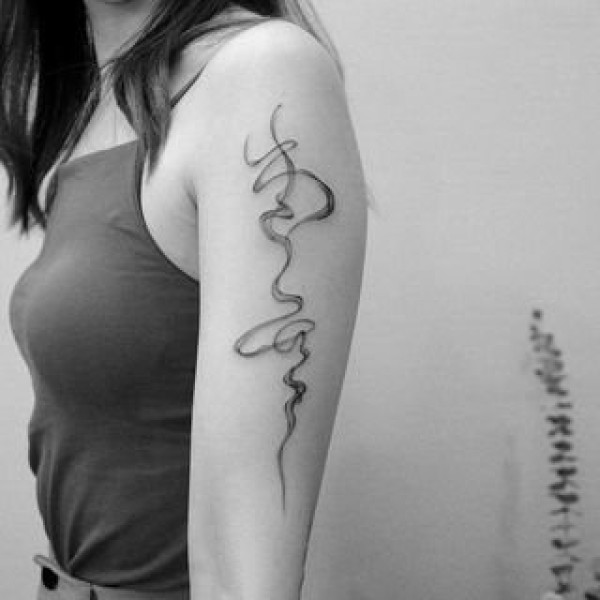 黑灰简约线条水墨纹身图案18张