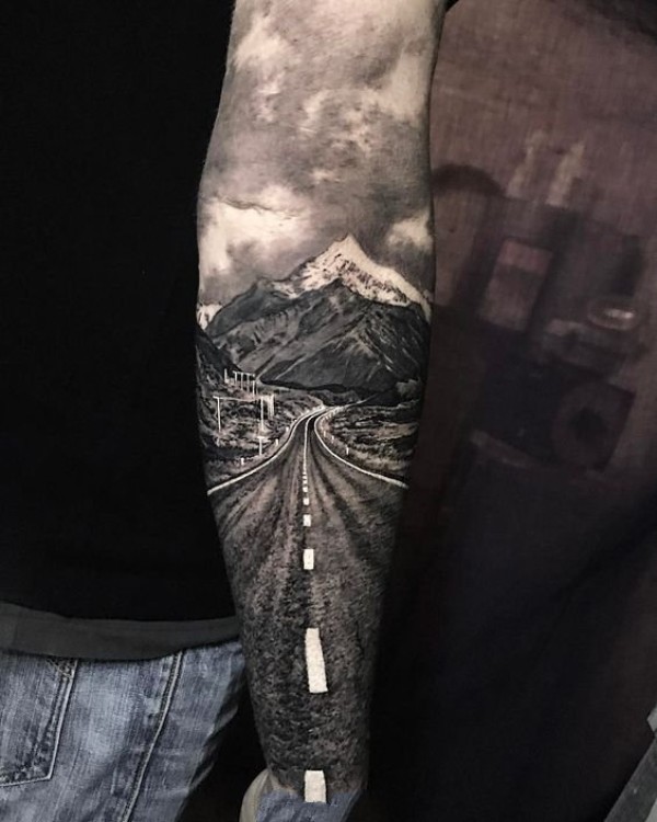 一组写实的公路素描纹身图片