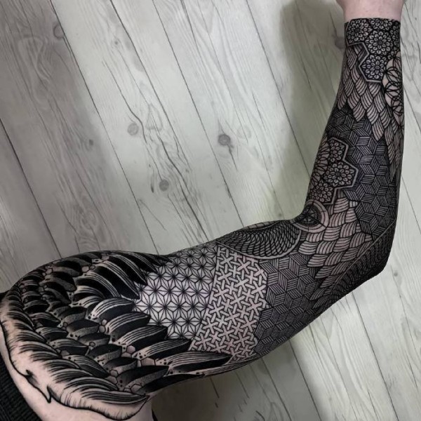 25款男性黑色手臂线条纹身点刺技巧半甲纹身图案