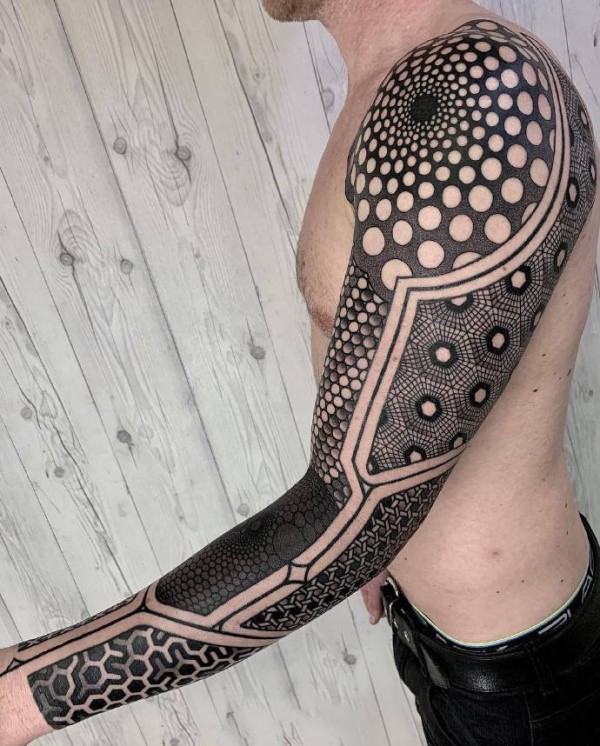 经典帅气的9张点刺花臂纹身图片