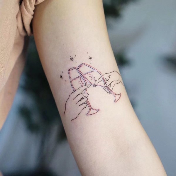 一组适合闺蜜姐妹情侣的简约手臂小清新纹身图案