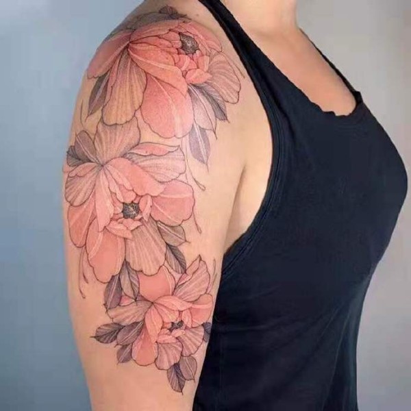 女性肩膀上多款漂亮的花朵纹身图案