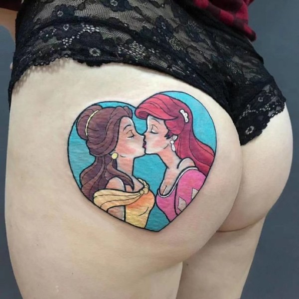女性屁股上调皮的吐舌头的嘴巴纹身图片