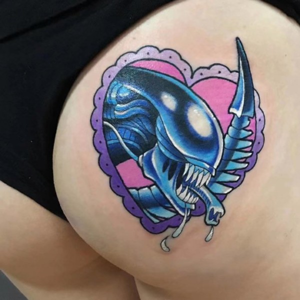 女性屁股上调皮的吐舌头的嘴巴纹身图片