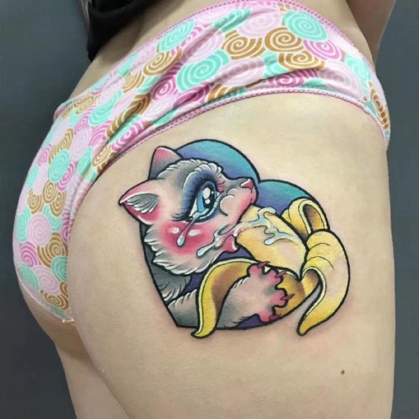 女性屁股上调皮的吐舌头的嘴巴纹身图片