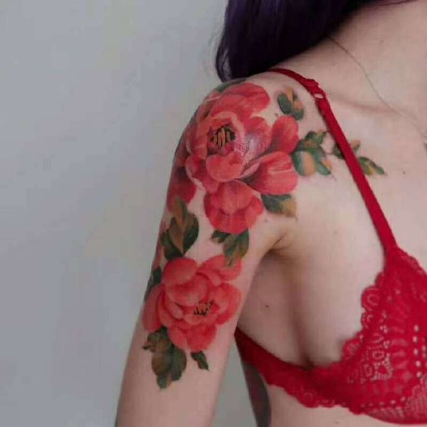 肩花纹身--一组适合肩部的黑灰肩花纹身图案欣赏