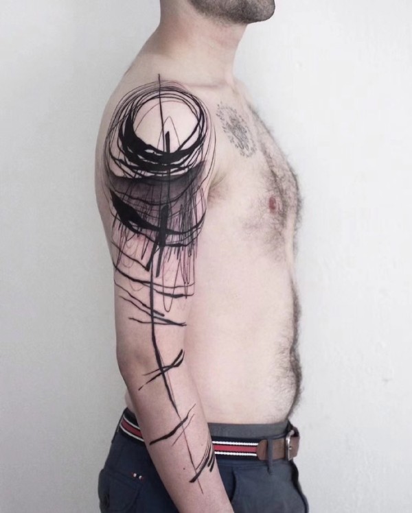 极简线条纹身 多款极简线条纹身素描欧美抽象纹身图片