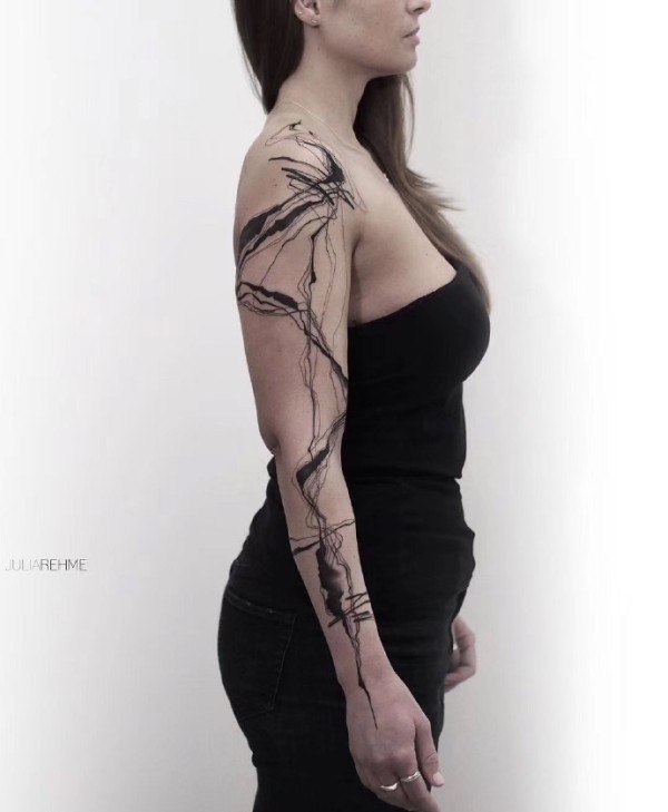 极简线条纹身 多款极简线条纹身素描欧美抽象纹身图片