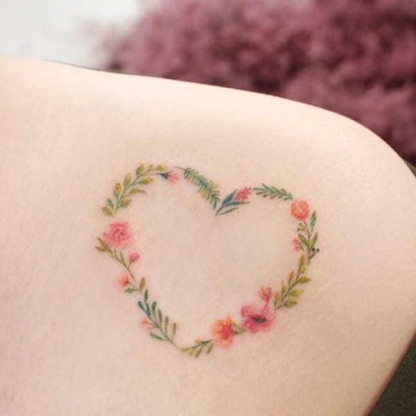 爱心小纹身--一组花花草草组成的心形小清新纹身图案