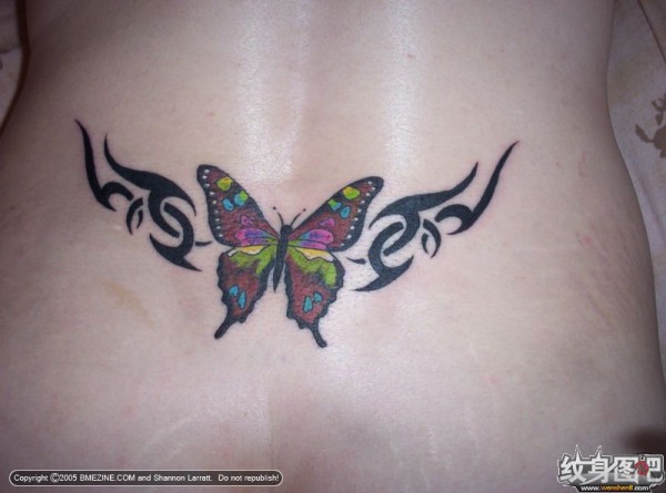 分享一款腰部时尚性感的蝶恋花纹身图案_腰部纹身图案大全_纹身图吧